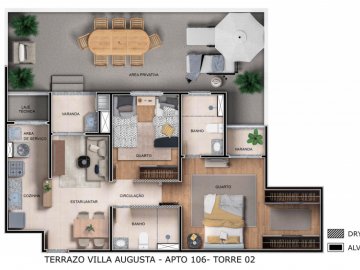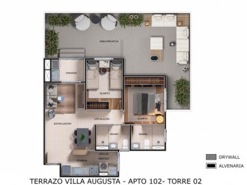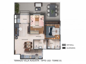 O Residencial Terrazo Vila Augusta é um condomínio com apartamentos de 55, 59, 64 e 72m² com 2 dormitórios, sendo 1 suíte.
