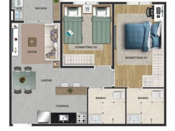 Apartamentos de 47m² com 2 dormitórios, sendo 1 suíte