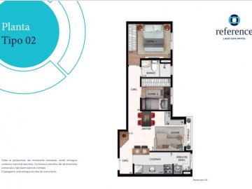 O Reference é um condomínio com apartamentos de 46 e 51 m² com 2 dormitórios