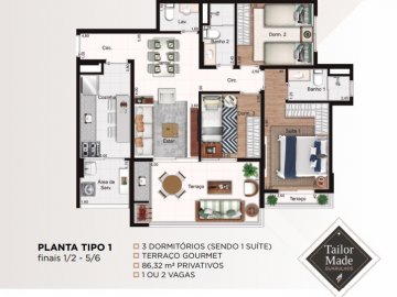 O Tailor Made é um condomínio com apartamentos de 70 e 86m² com 2 ou 3 dormitórios, sendo 1 suíte.