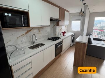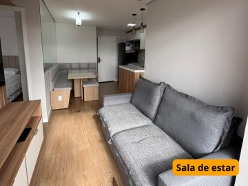 Apartamento moderno com 42,60 m² em conceito aberto, extremamente arejado e com uma vista incrível! Imóvel seminovo, entregue há apenas 2 anos, já equipado com móveis planejados de qualidade e churrasqueira ecológica na varanda.